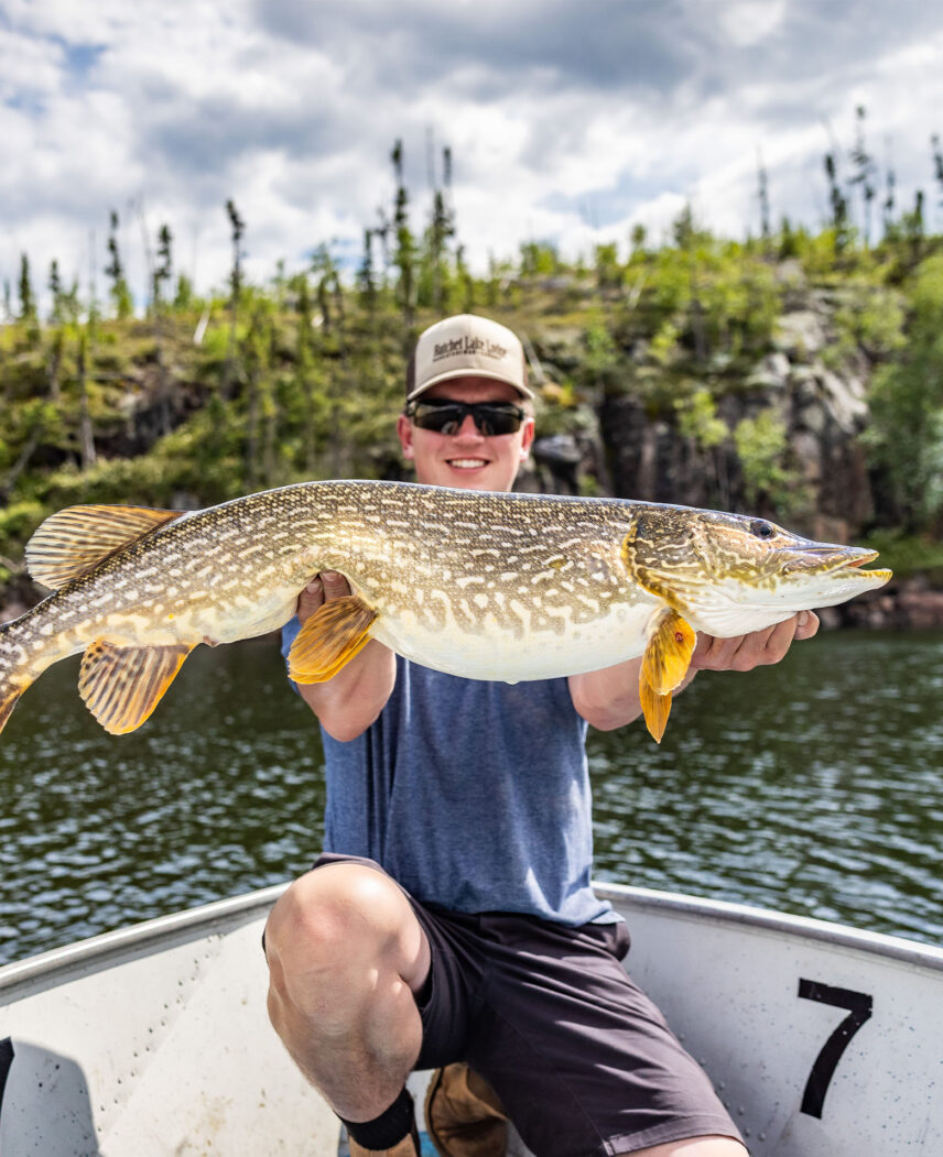 The most targeted species at Hatchet Lake, the northern pike (Esox lucius) makes a prized catch owing to its aggressive nature and impressive size. Our guides have spent tens of thousands of hours searching, patterning and catching these incredible predators. Join us early in the year to target pike in the shallow warm bays post spawn or later in the year when the fish have moved to the deeper weed beds in search of food and cooler temperatures.