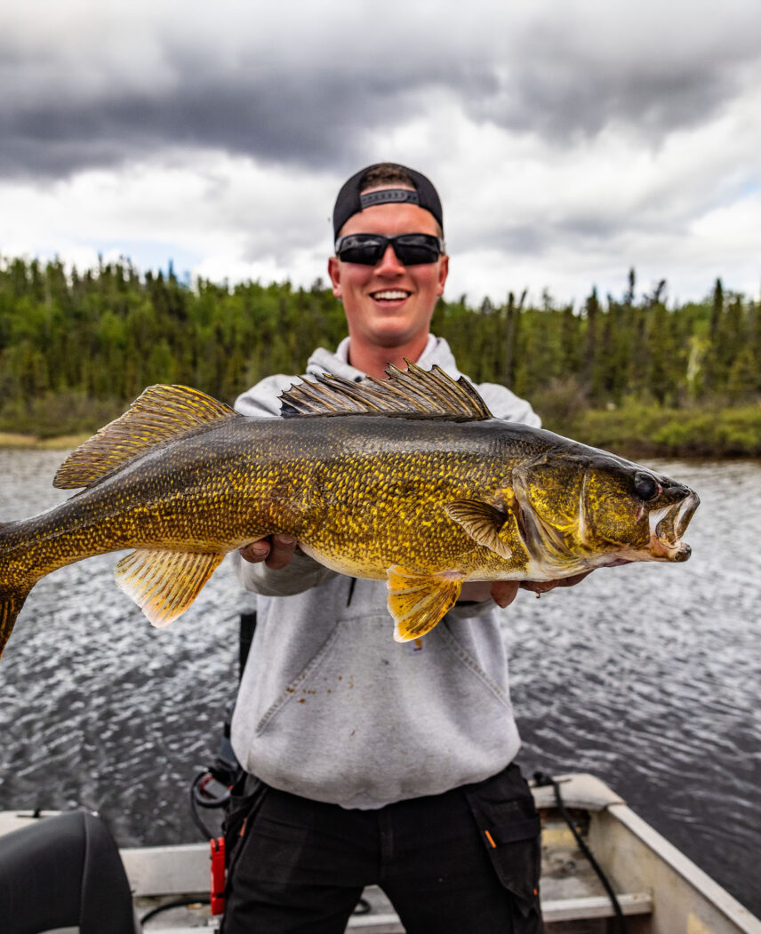 Possibly the most sought-after fish species in Canada, walleye (Sander vitreus) have a beautiful golden colour and a subtle yet distinct bite. With their nocturnal feeding habits and a tendency to congregate in deep, structure-rich areas, walleye are known for being elusive and challenging to catch. Our guides and guests find walleye in the deeper holes along the river, sometimes even mixed in with the pike, which makes for an exciting surprise.